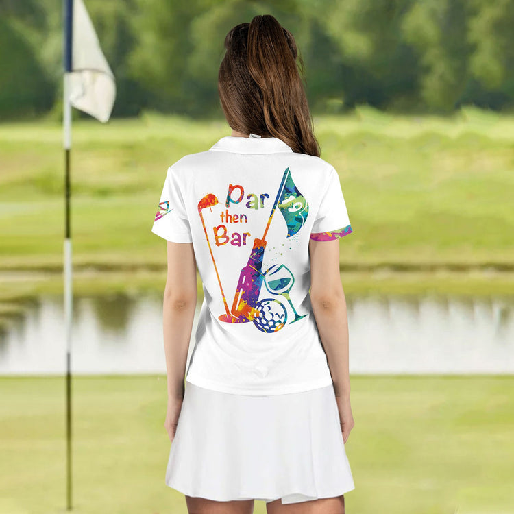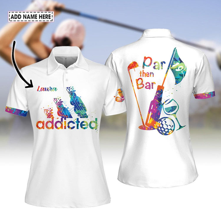 Personalized Name Golf Water Color Par Then Bar Addicted Women Polo Shirt