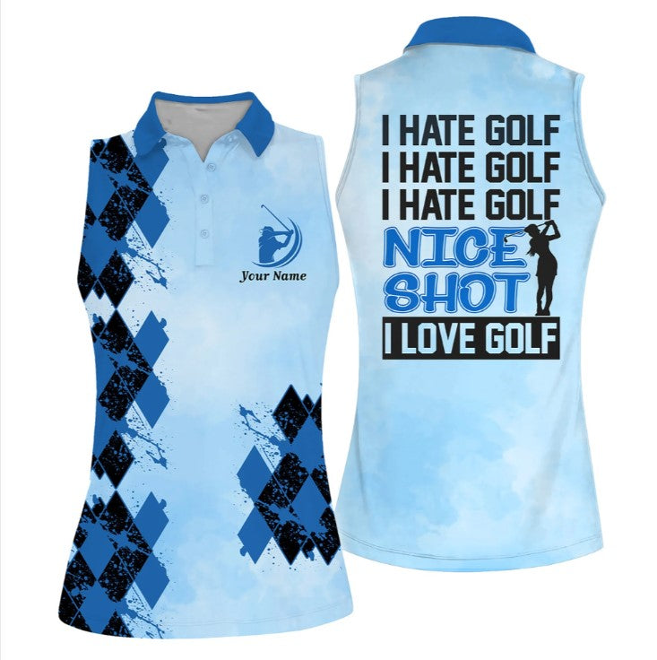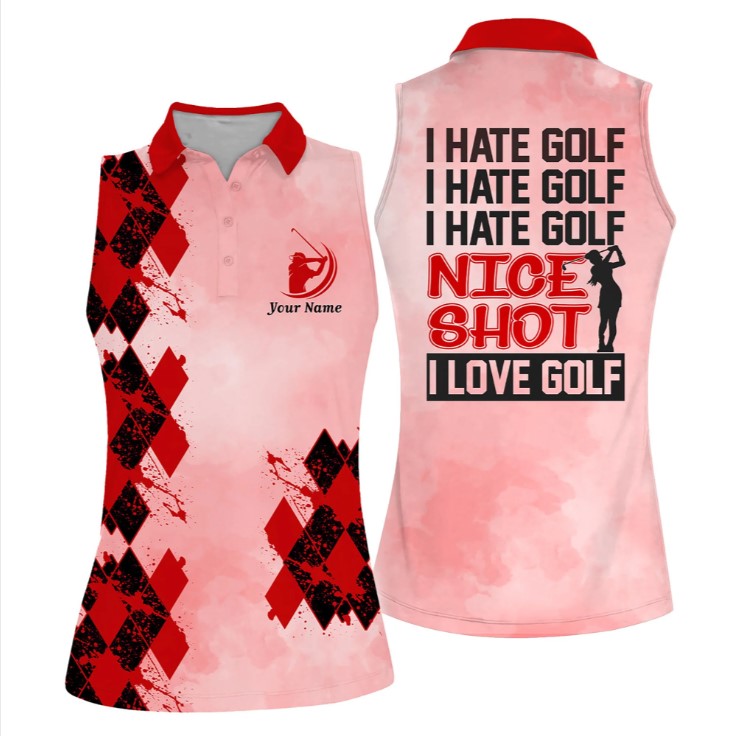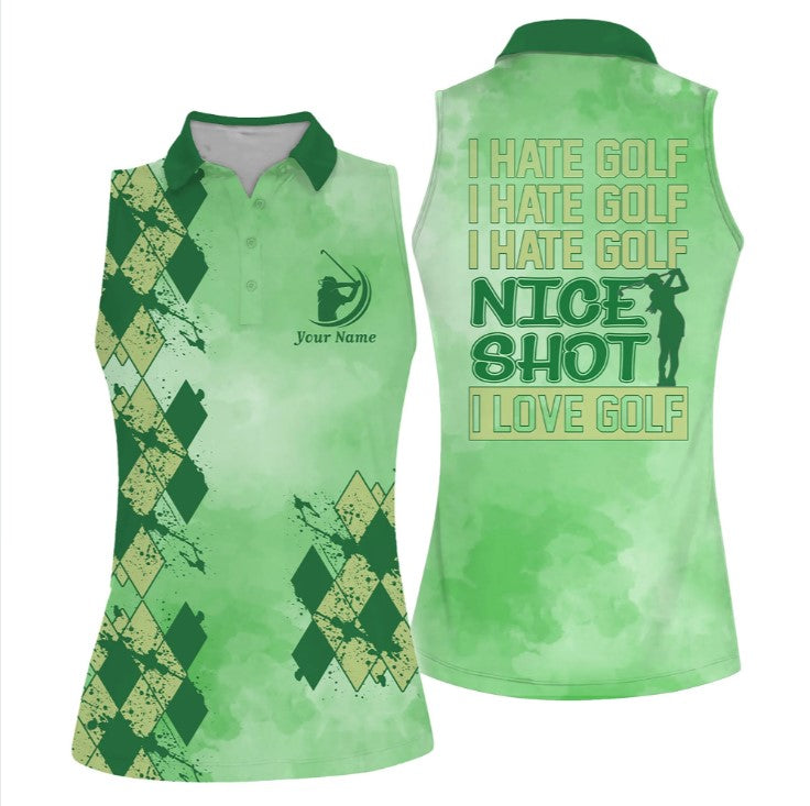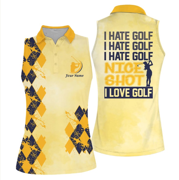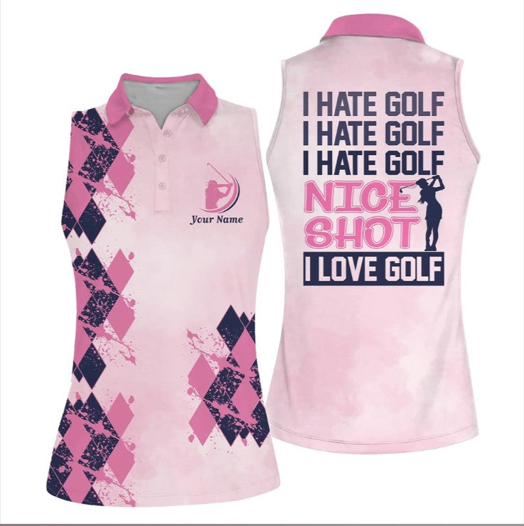 Home Womens Sleeveless Golf Shirts Personalized Name I Hate Golf I Hate Golf Short Sleeve Women Polo Shirt For Ladies Golf Shirt