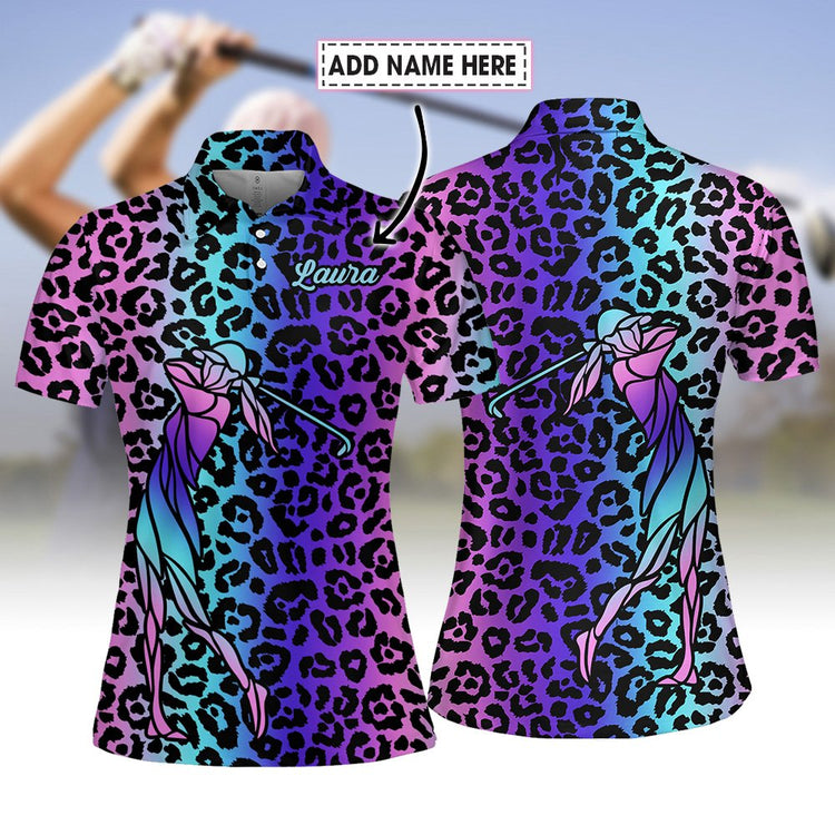 Personalized Name Leopard Gradient Color Golf Pattern Women Polo Shirt