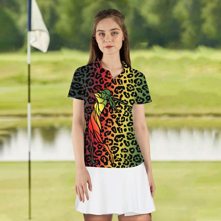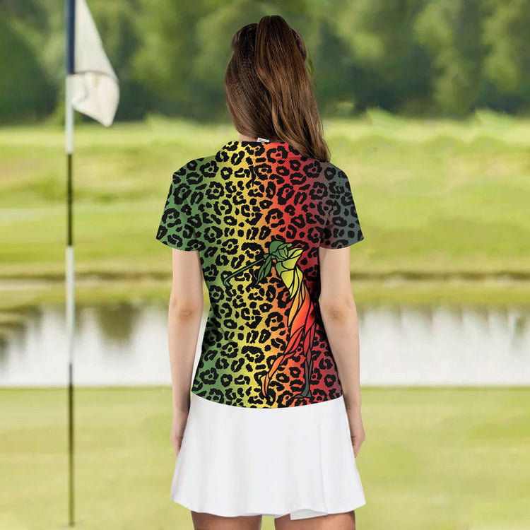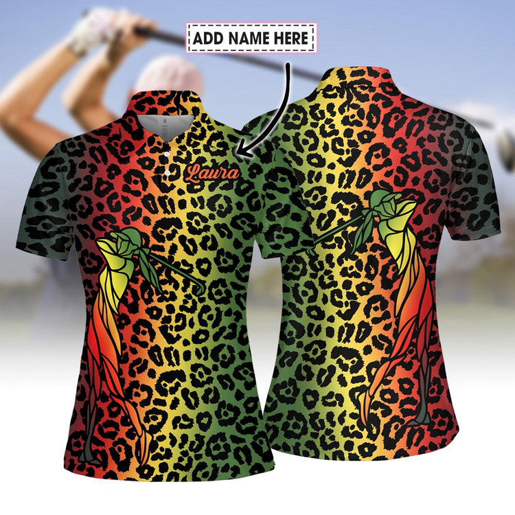 Personalized Name Leopard Gradient V2 Color Golf Pattern Women Polo Shirt