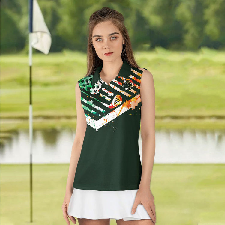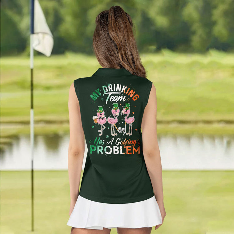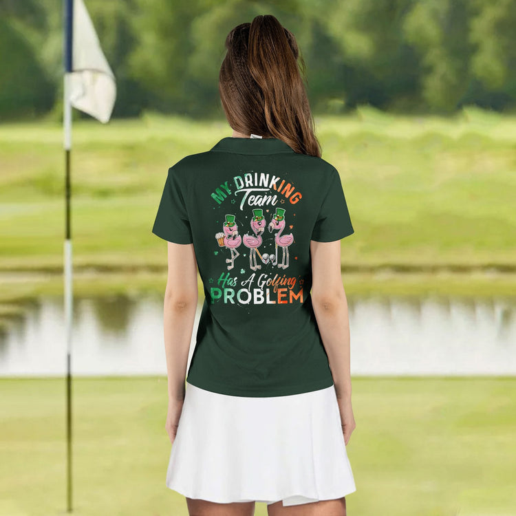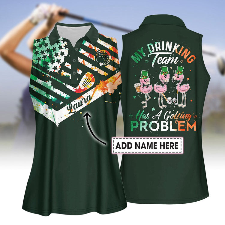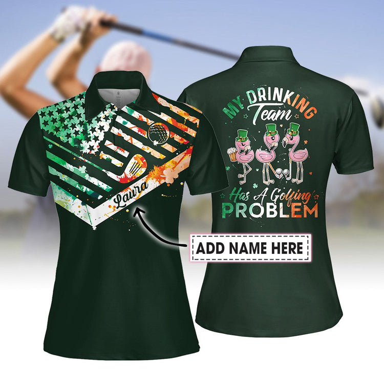 Personalized Name My Drinking Team Has A Golfing Problem American Flag Women Polo Shirt