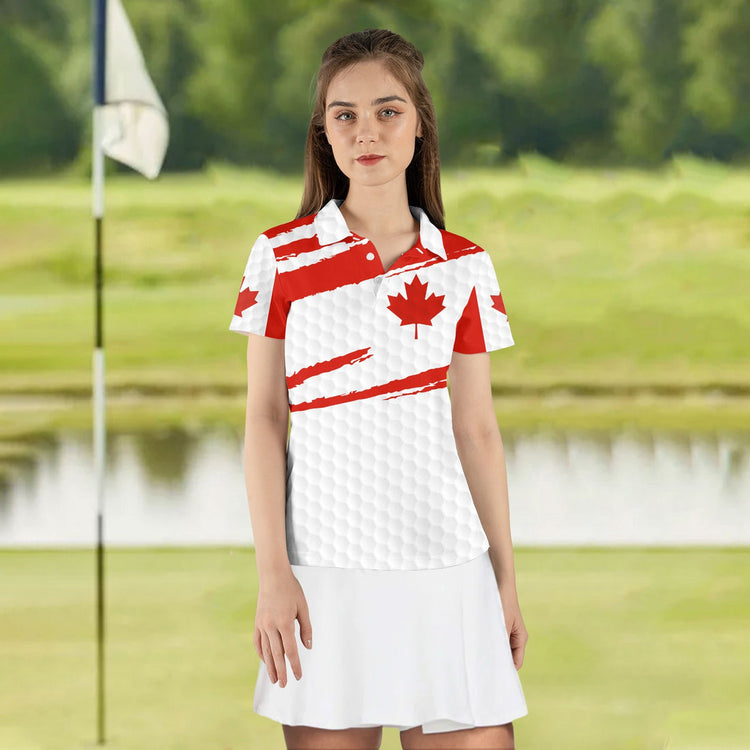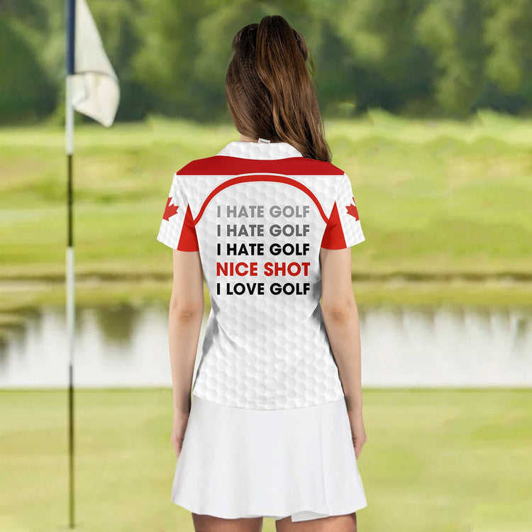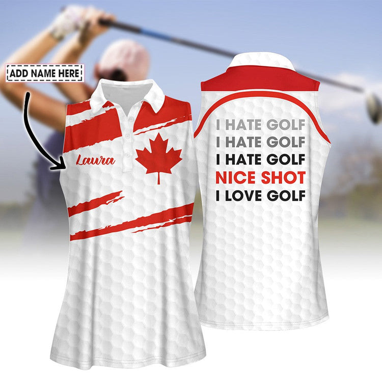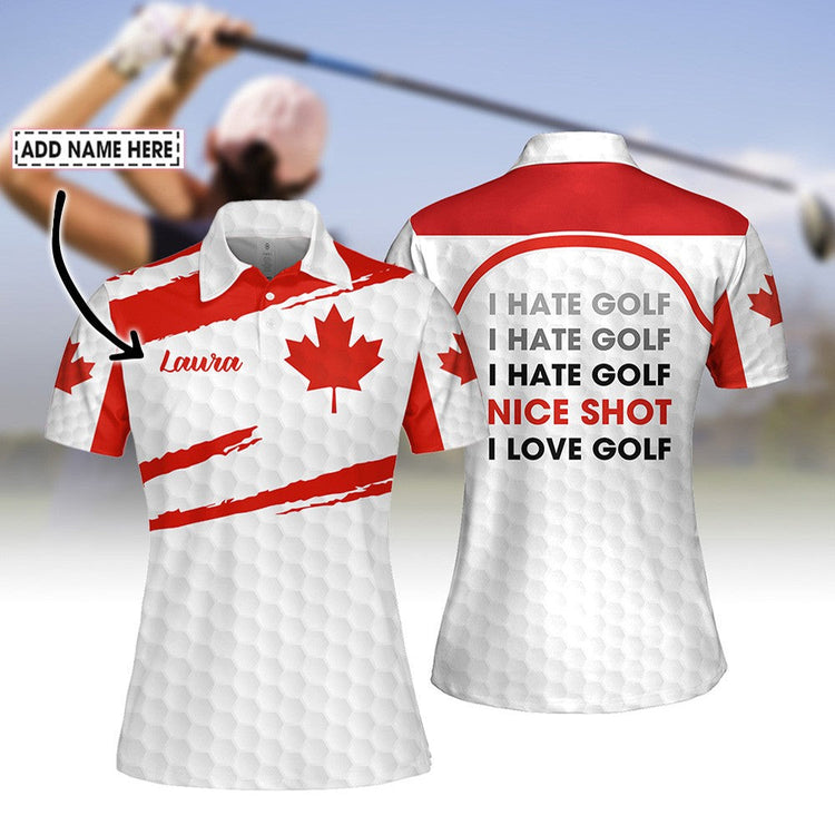 Personalized Name Nice Shot I Hate Golf Canada Flag Women Polo Shirt
