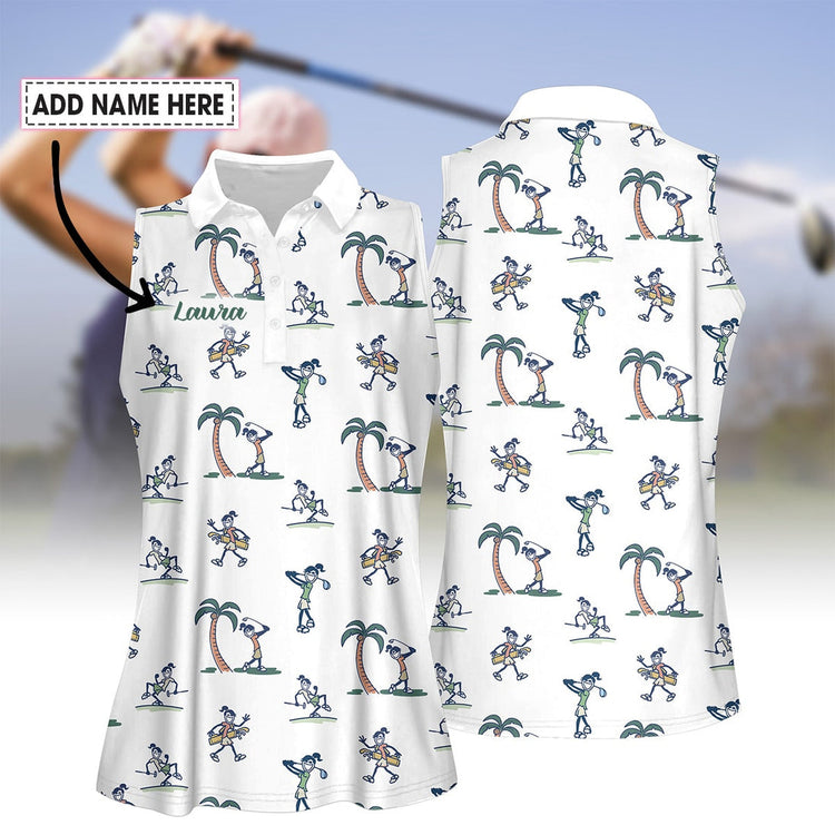 Home Womens Sleeveless Golf Shirts Personalized Name Seamless Palm Tree Golf Women Polo Shirt