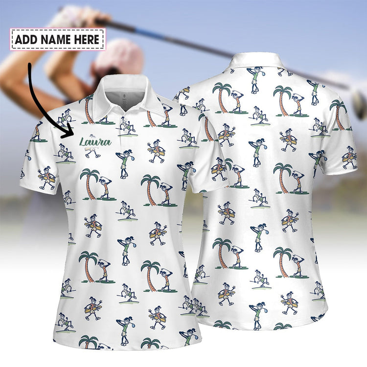 Personalized Name Seamless Palm Tree Golf Women Polo Shirt