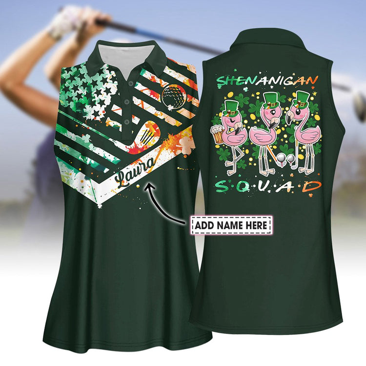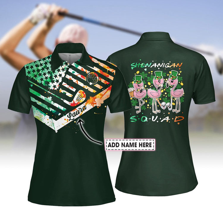 Personalized Name Shenanigan Squad American Flag Patrick Golf Women Polo Shirt