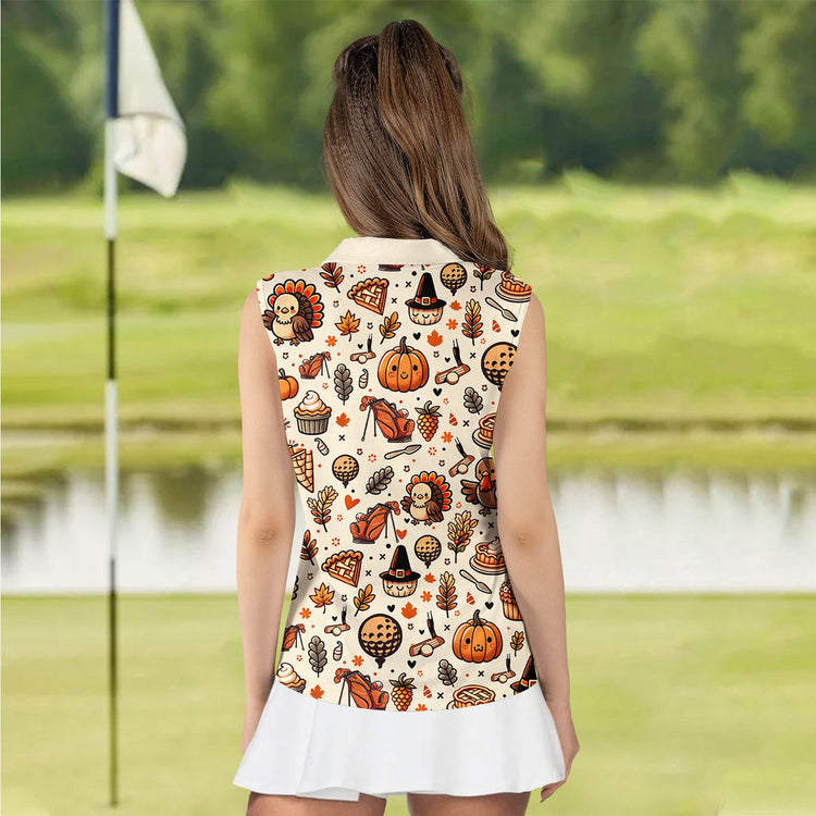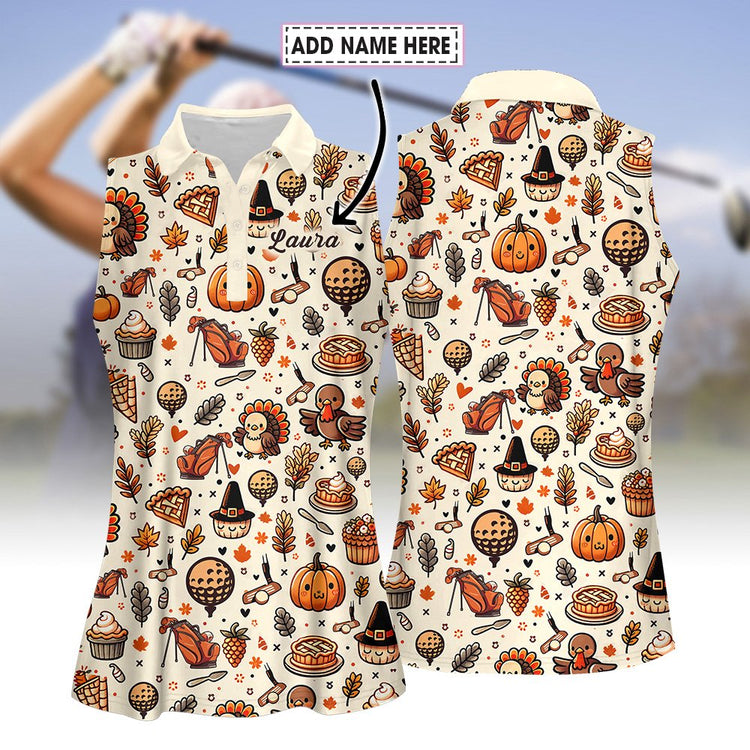 Home Womens Sleeveless Golf Shirts Personalized Name Thanksgiving Icon Golf Pattern Women Polo Shirt