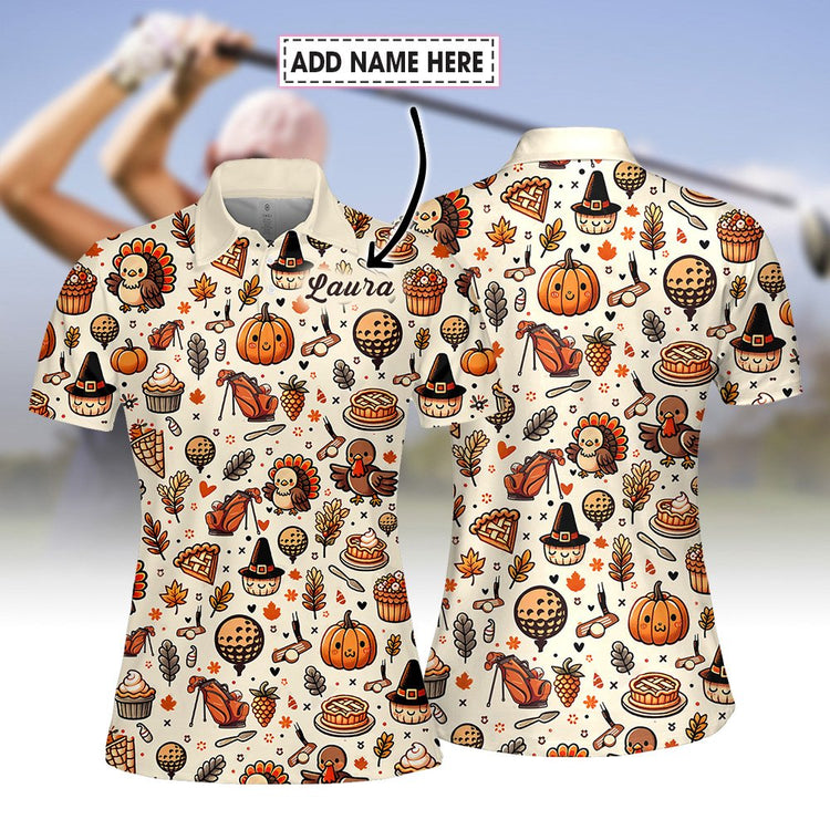 Personalized Name Thanksgiving Icon Golf Pattern Women Polo Shirt