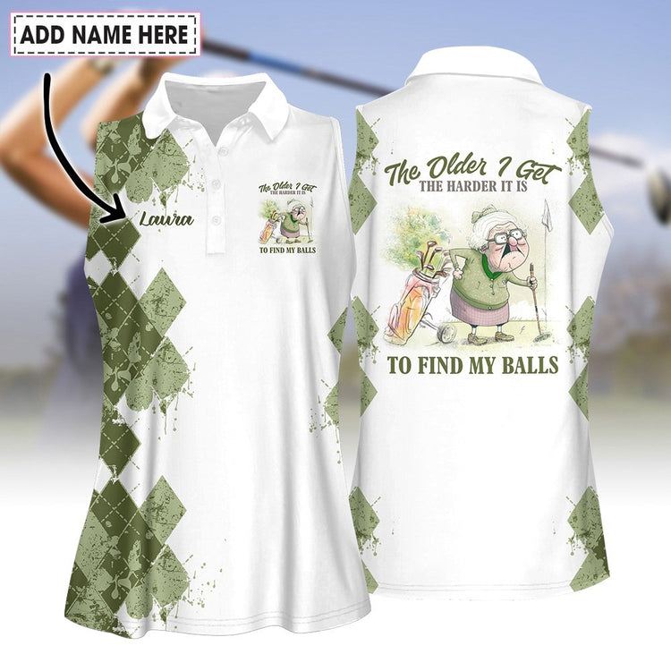 Home Womens Sleeveless Golf Shirts Personalized Name The Older I Get To Find My Ball Golf Grandma Women Polo Shirt