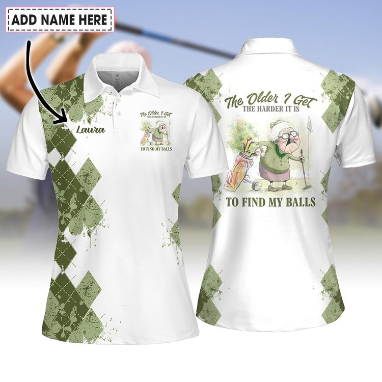 Personalized Name The Older I Get To Find My Ball Golf Grandma Women Polo Shirt