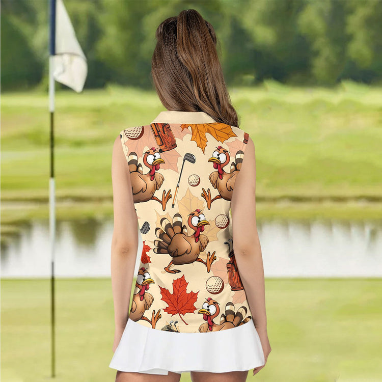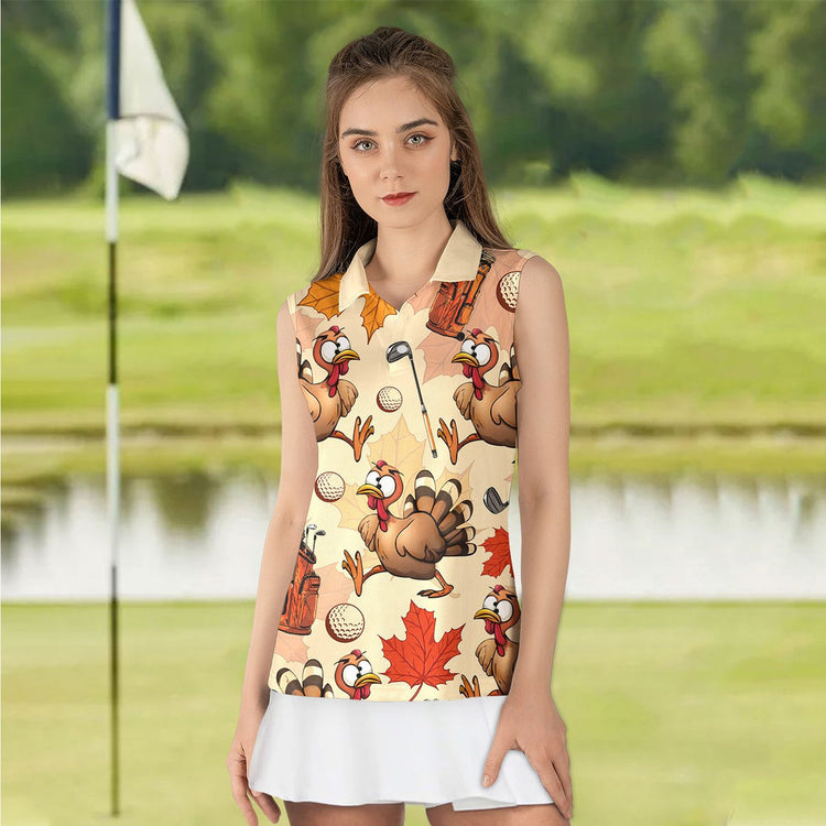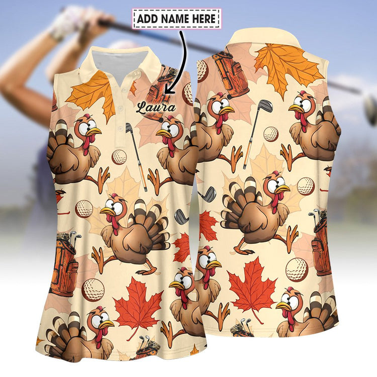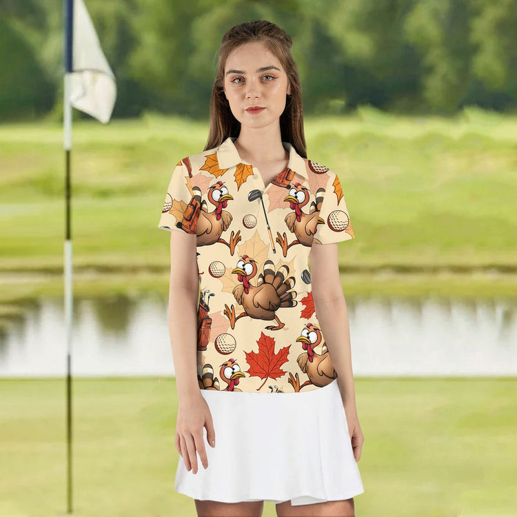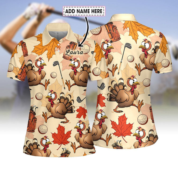 Personalized Name Turkey Golf Pattern Women Polo Shirt, Thanksgiving Golf Shirt