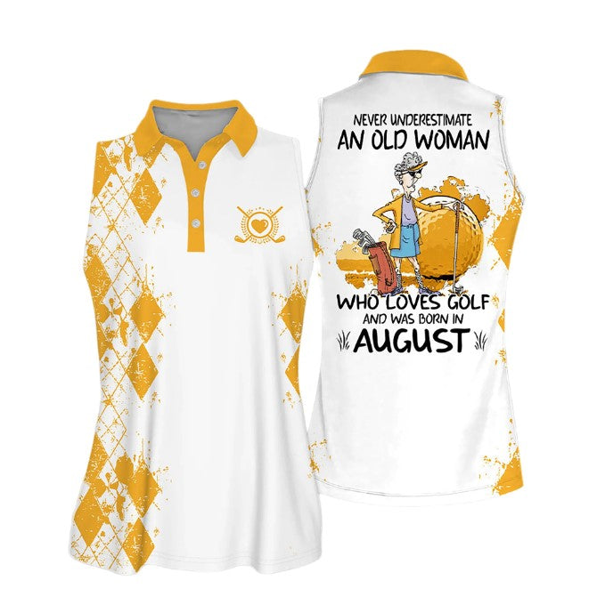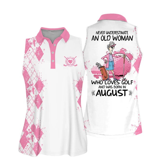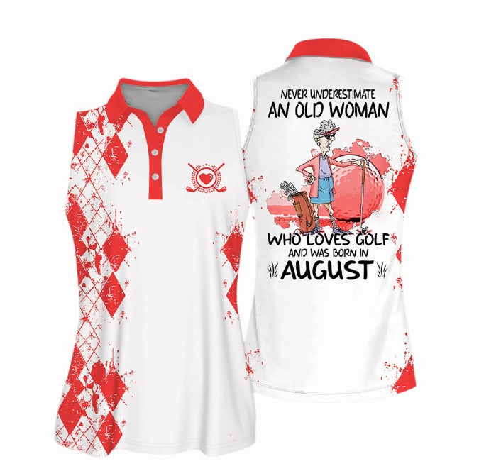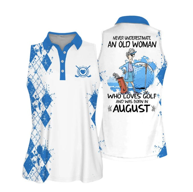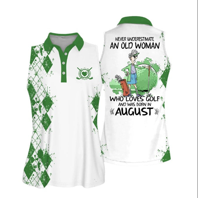 Sleeveless Women Polo Shirt For Ladies, Never underestimate an old woman who loves golf and was born in August, Golf Shirt