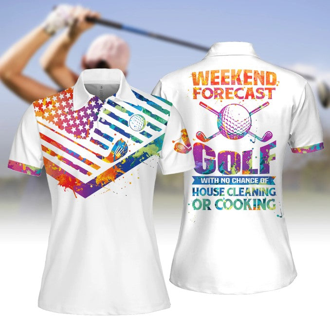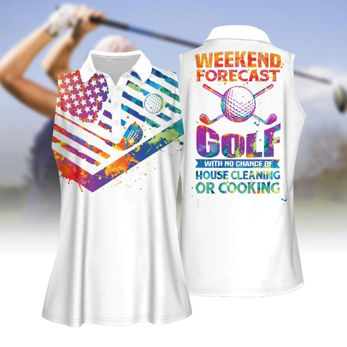 Women Golf Polo Shirt, Tie-Dye American Flag weekend forecast golf Sleeveless Polo Shirt, Women Golf Shirt