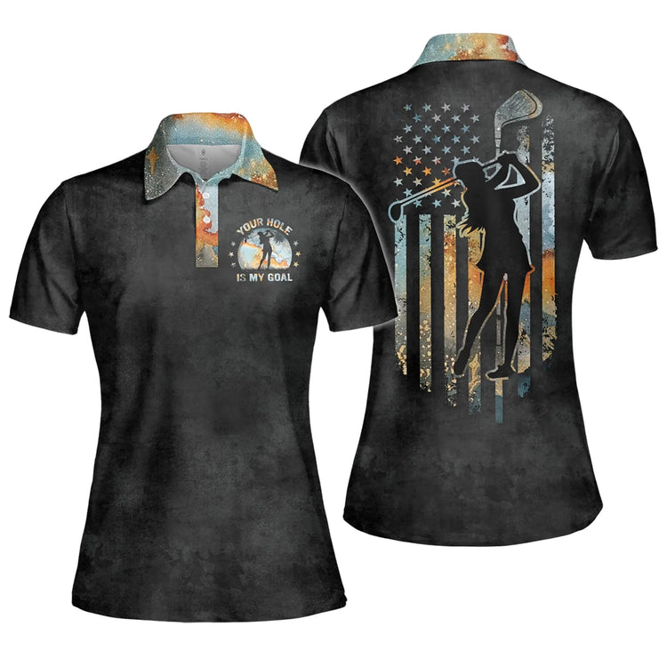Your Hole Is My Goal Golf American Flag Women Polo Shirt, Sleeveless Polo Shirt