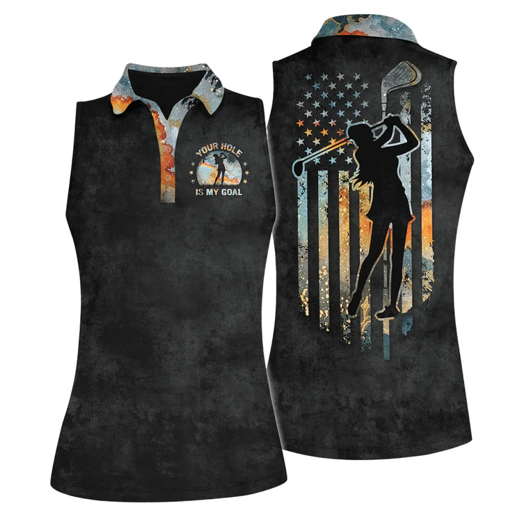 Home Womens Sleeveless Golf Shirts Your Hole Is My Goal Golf American Flag Women Polo Shirt, Sleeveless Polo Shirt