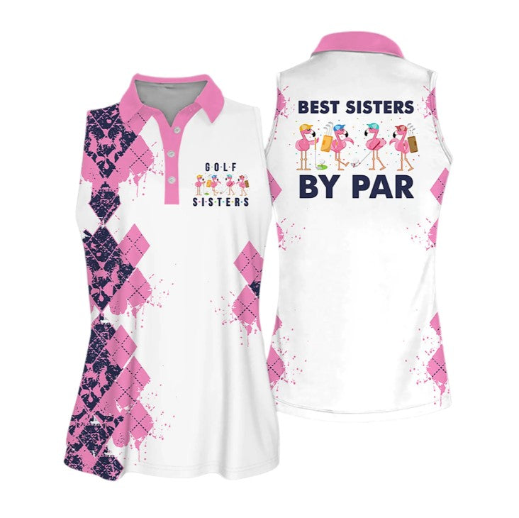 Best Sisters By Par Women Sleeveless Polo Shirt, Golf Polo Shirt for Women