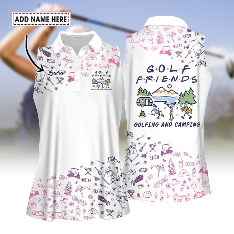 Custom Name Golf Friends Golfing And Camping Women Sleeveless Polo Shirt