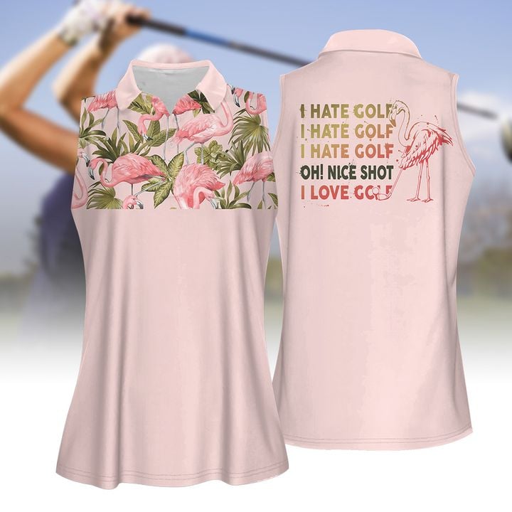 Home Women's Sleeveless Polo Shirt I Hate Golf Flamingo Pattern Women Golf Apparel, Women Short Sleeve Polo Shirt, Sleeveless Polo Shirt