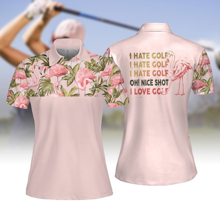 I Hate Golf Flamingo Pattern Women Golf Apparel, Women Short Sleeve Polo Shirt, Sleeveless Polo Shirt
