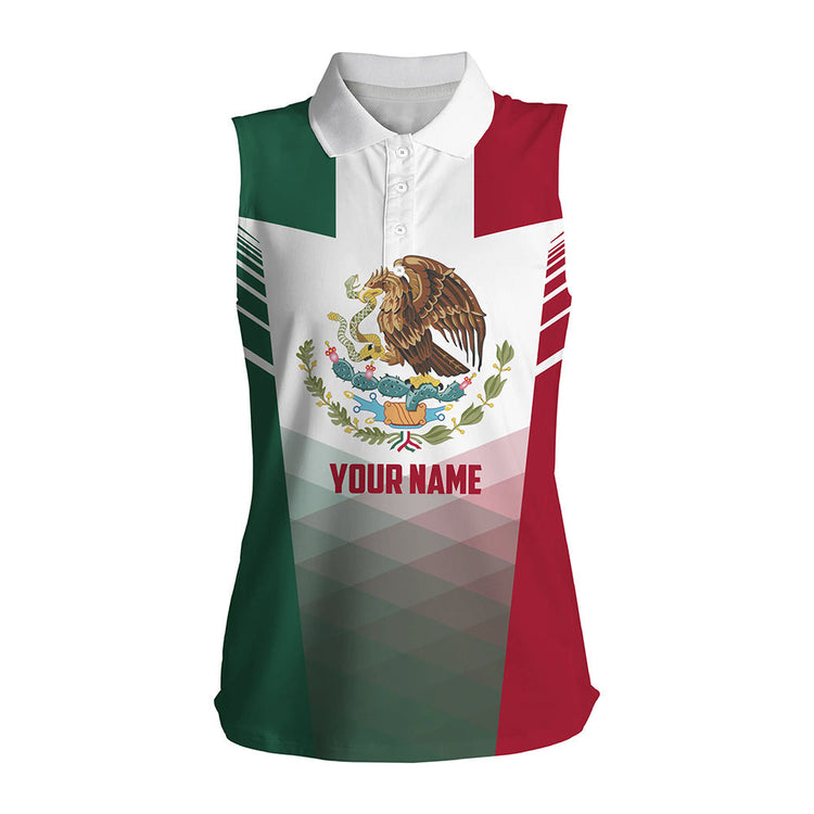 Mexican Flag Womens Sleeveless Polo Shirts Patriotic Golf Outfit Women, Unique Ladies Golf Apparel