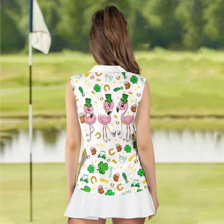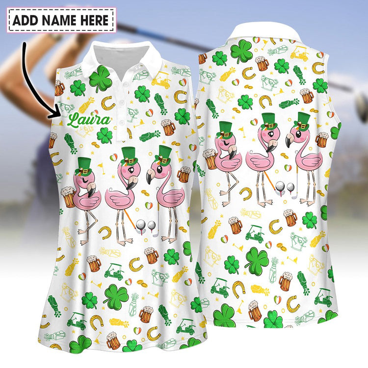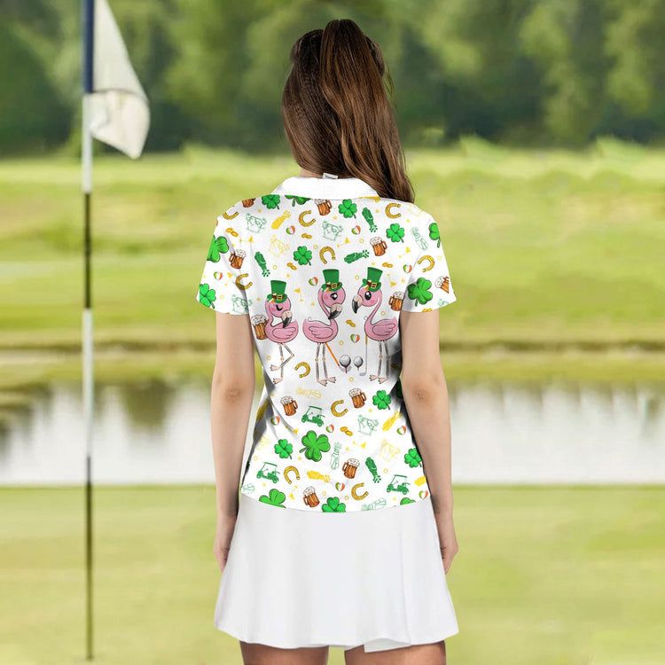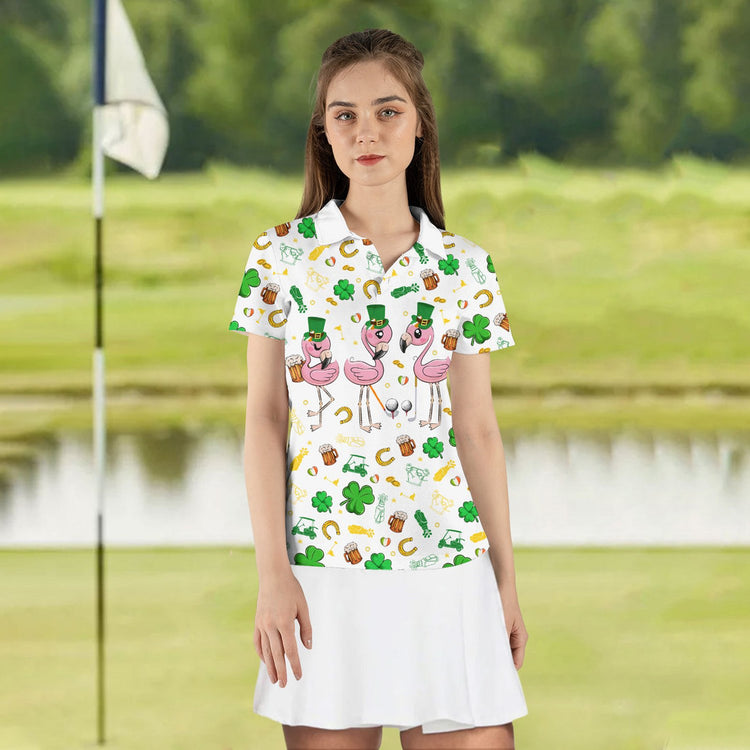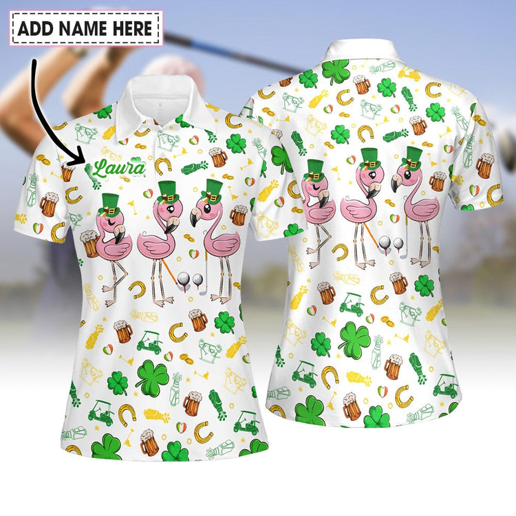 Personalized Name Flamingo ST Patrick's Day Women Polo Shirt