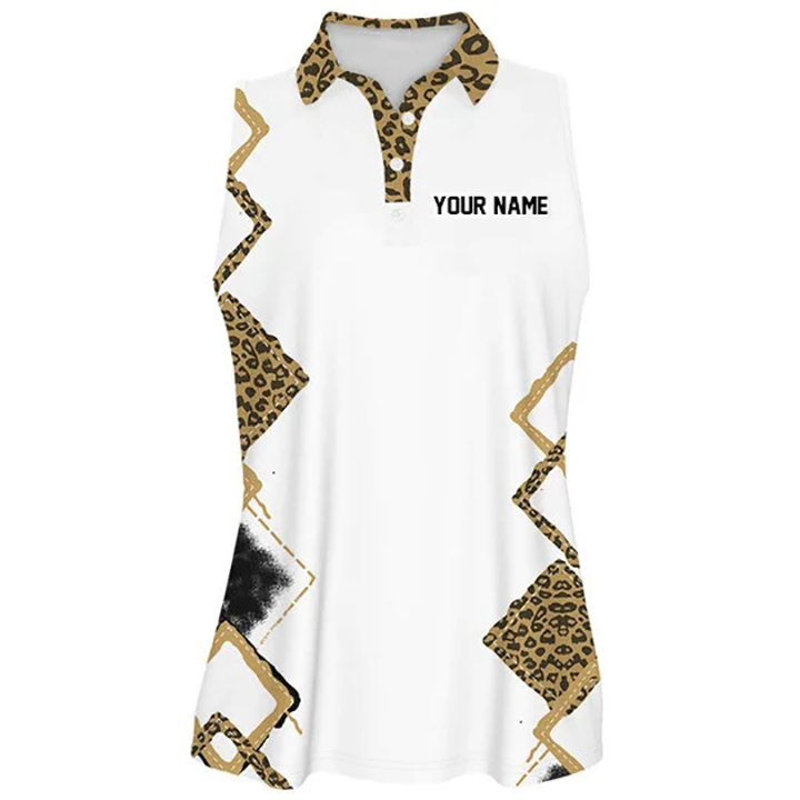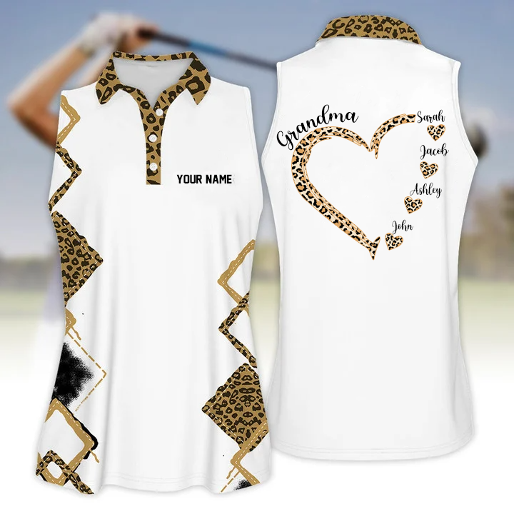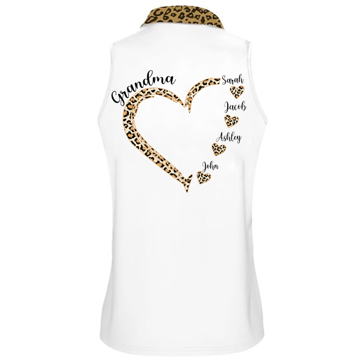 Personalized Name Leopard Grandma with Grandkids Sleeveless Polo Shirt, Gift for Mother's Day
