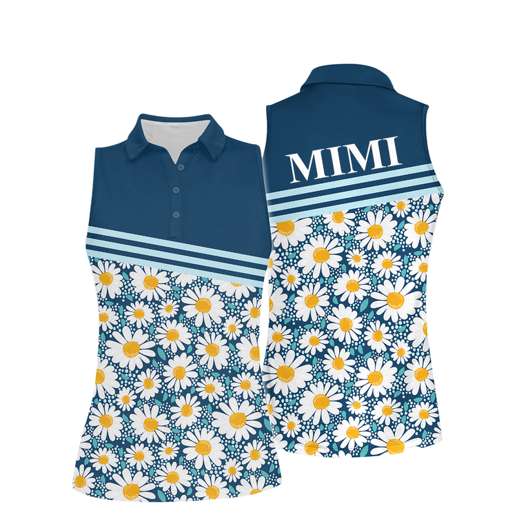 Personalized Nickname Mimi Mom Daisy Sleeveless Polo Shirt, Custom Name 3D Mother's Day Shirt