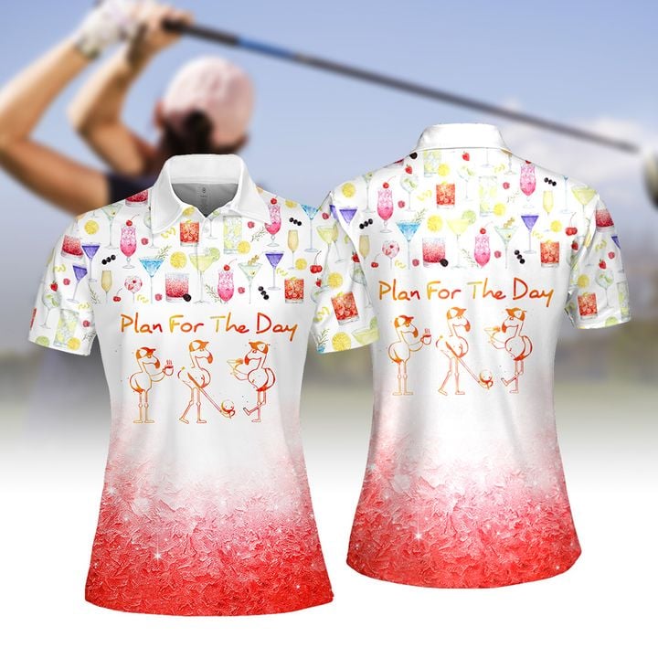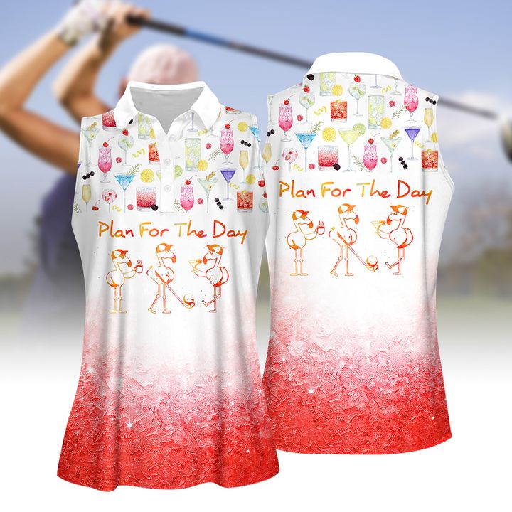 Plan For The Day Drink Cocktail Flamingo Women Golf Apparels, Women Short Sleeve Polo Shirt, Sleeveless Polo Shirt