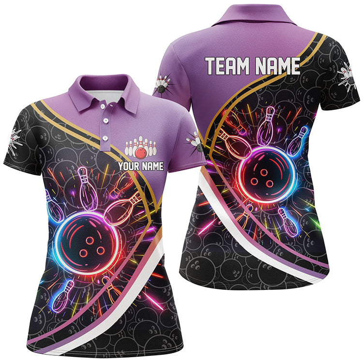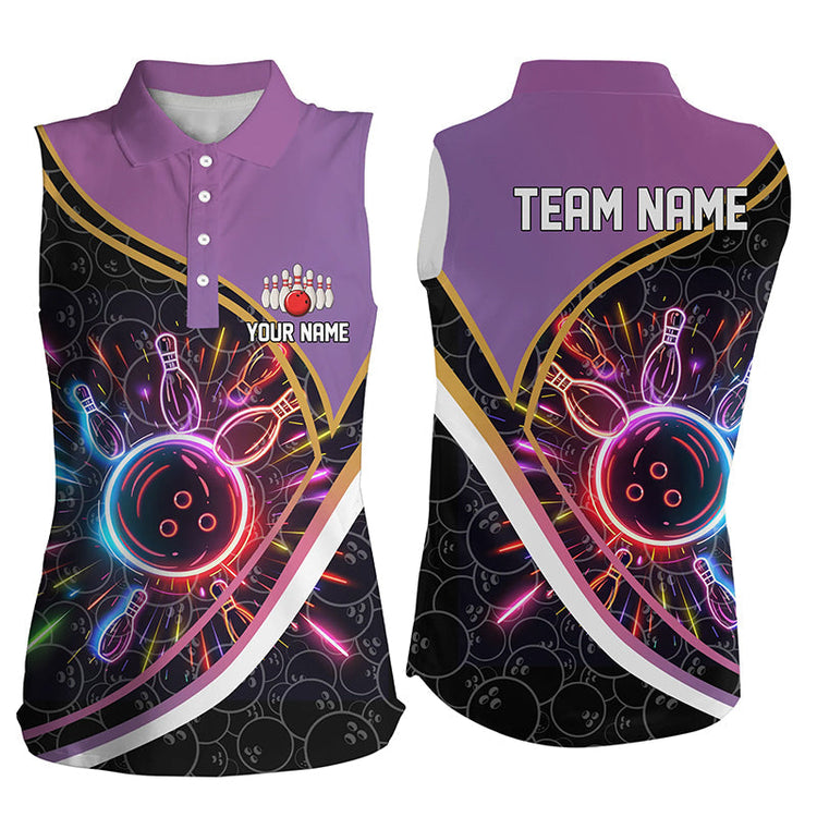 Purple Gradient Black Camo Women Sleeveless Polo Shirt Custom Colorful Neon Light Team Bowling