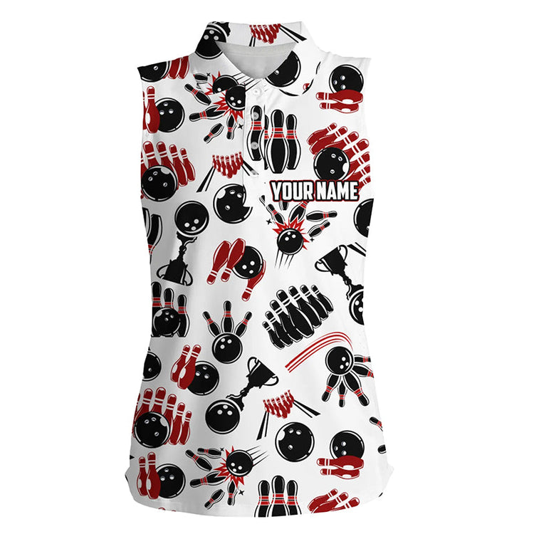 Womens Bowling Sleeveless Polo Shirts Custom Bowling Pattern Team Bowling Polo For Girl Bowlers