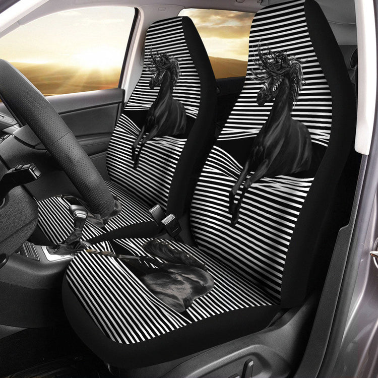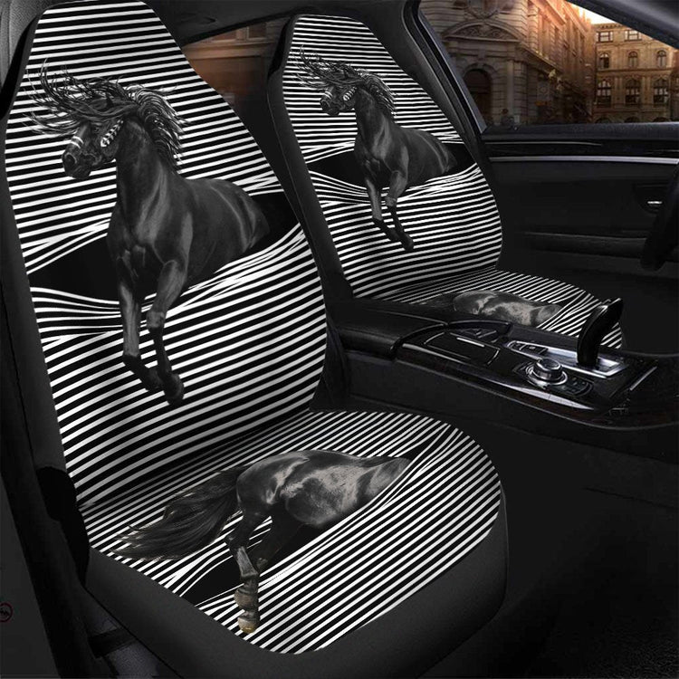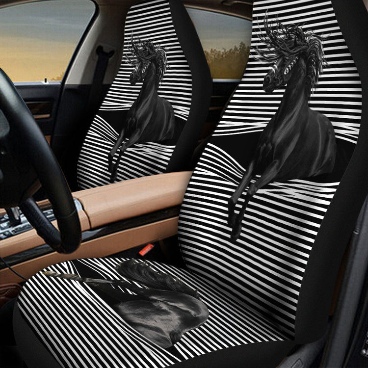 3D All Over Print Horse With Car Seat Cover, Front Carseat Cover With Black Horse