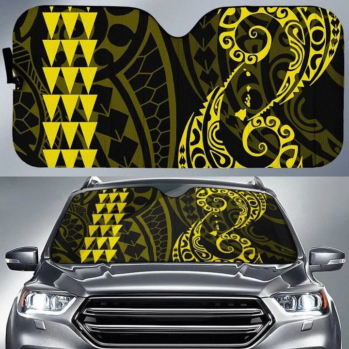 Yellow Kakau Polynesia Hawaii Car Sun Shade, Cover Auto Windshield Coolspod